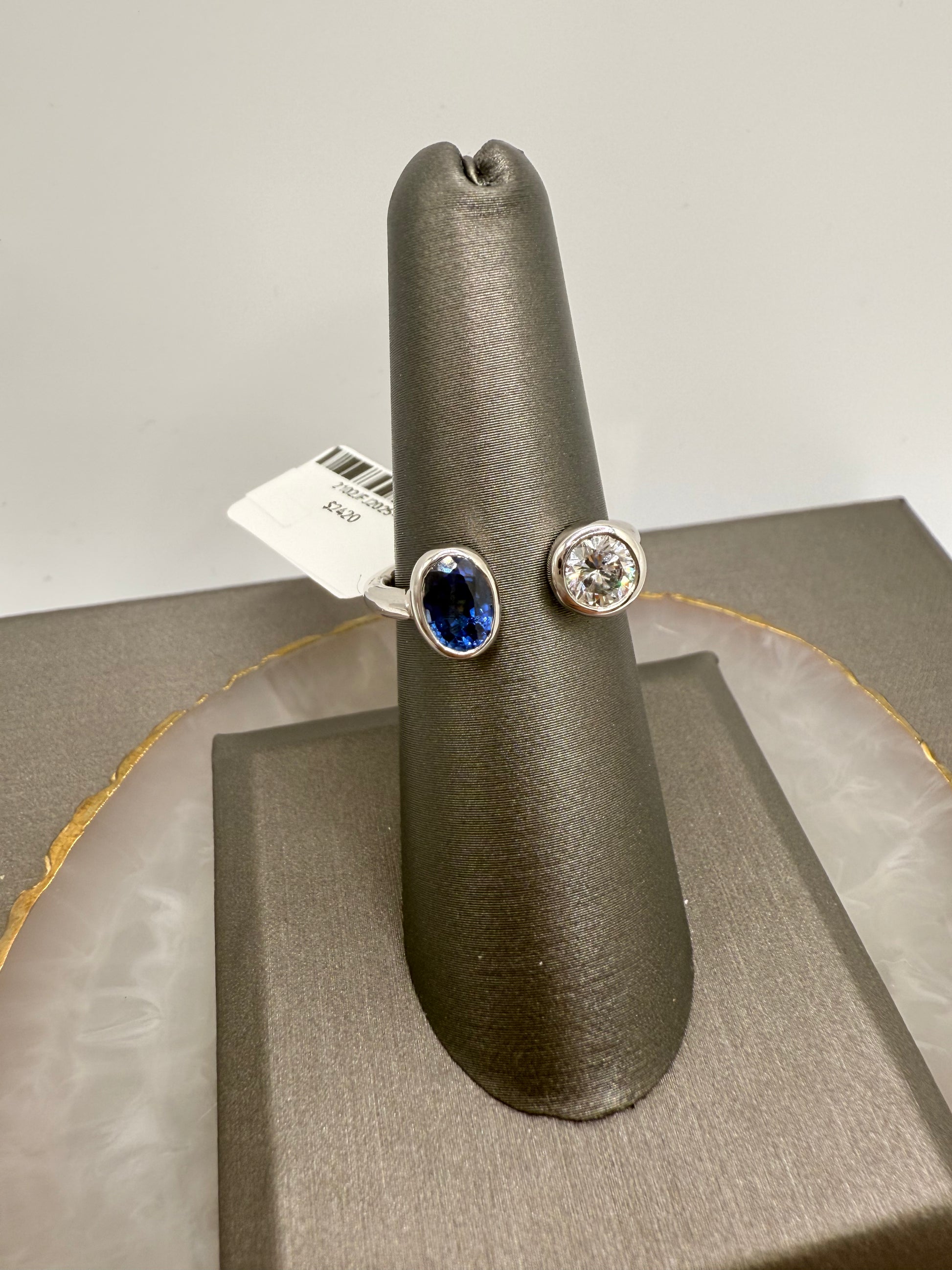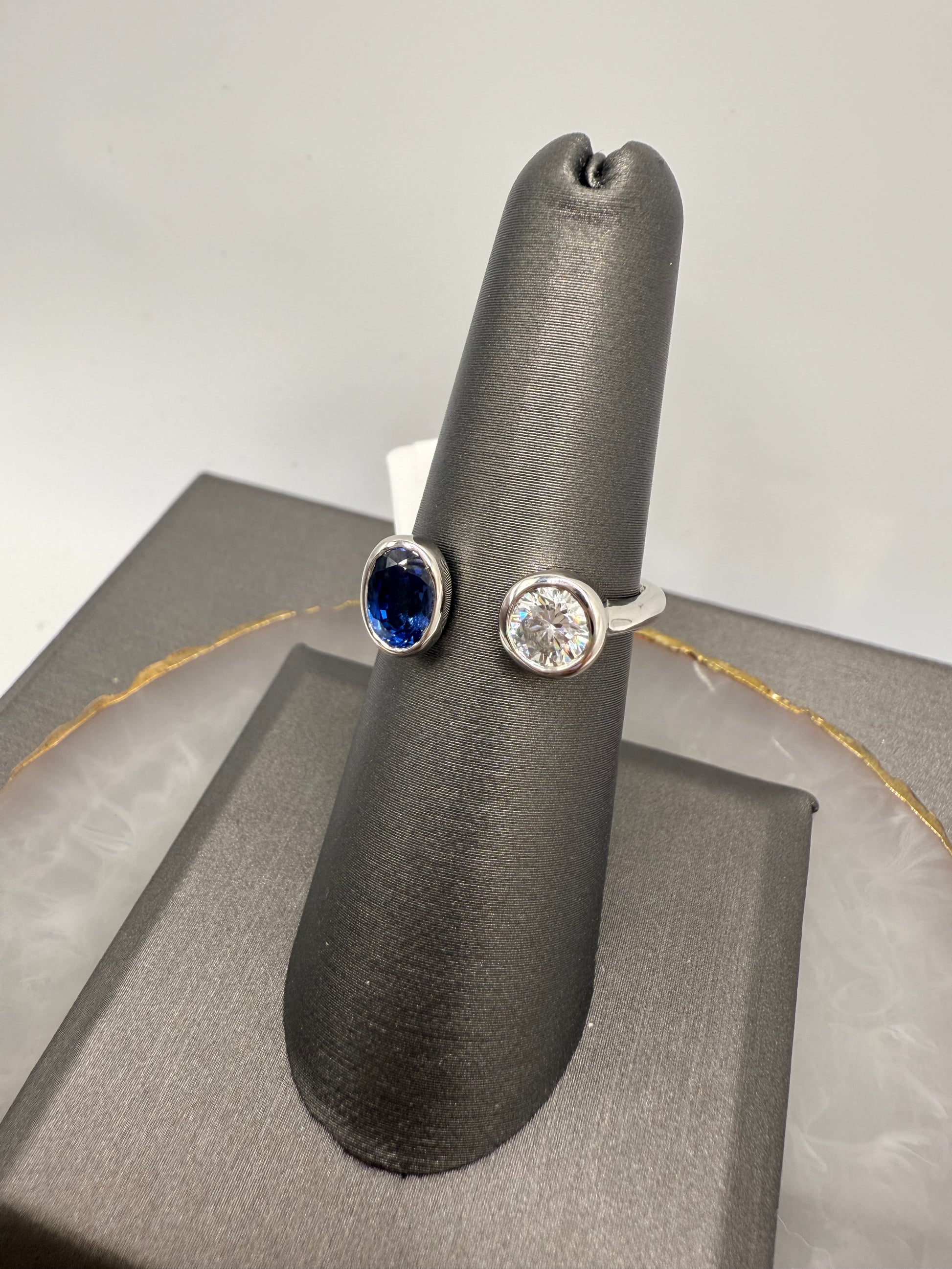 Diamond & Blue Sapphire Two Stone Ring